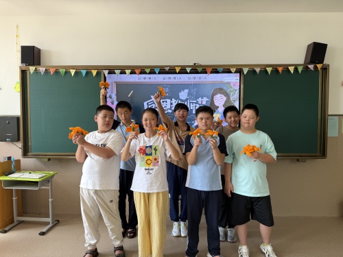 9月10日是一年一度的教師節(jié),今天同學(xué)們?cè)缭鐏淼浇淌业却o老師們送上教師節(jié)的第一份祝?!欢涠湎蜿柣?。這一朵朵漂亮的花朵是繪畫與手工課上老師帶領(lǐng)同學(xué)們做出來的??赐瑢W(xué)們那一張張認(rèn)真的臉龐,真惹人喜愛;那一顆顆懂得感恩的心更上讓老師們感到欣慰。